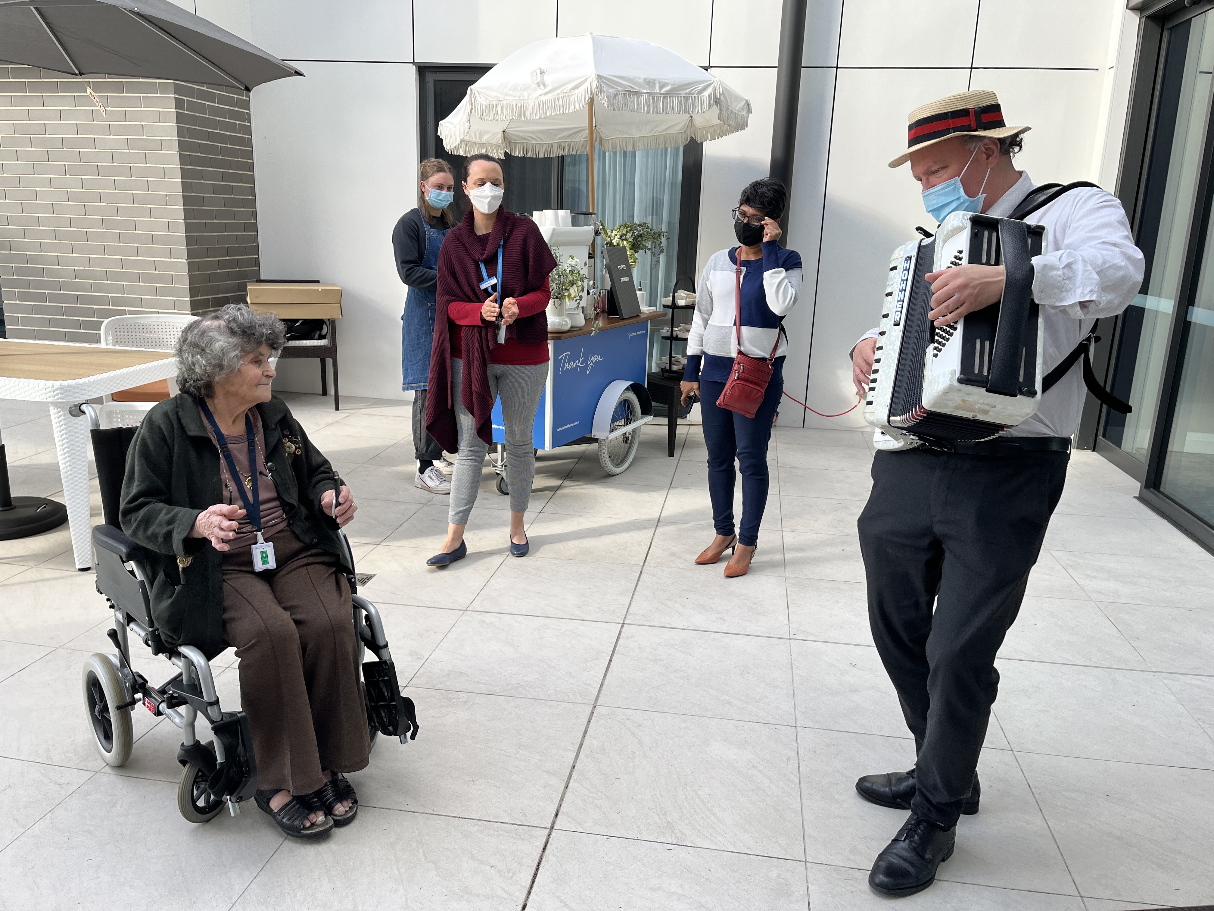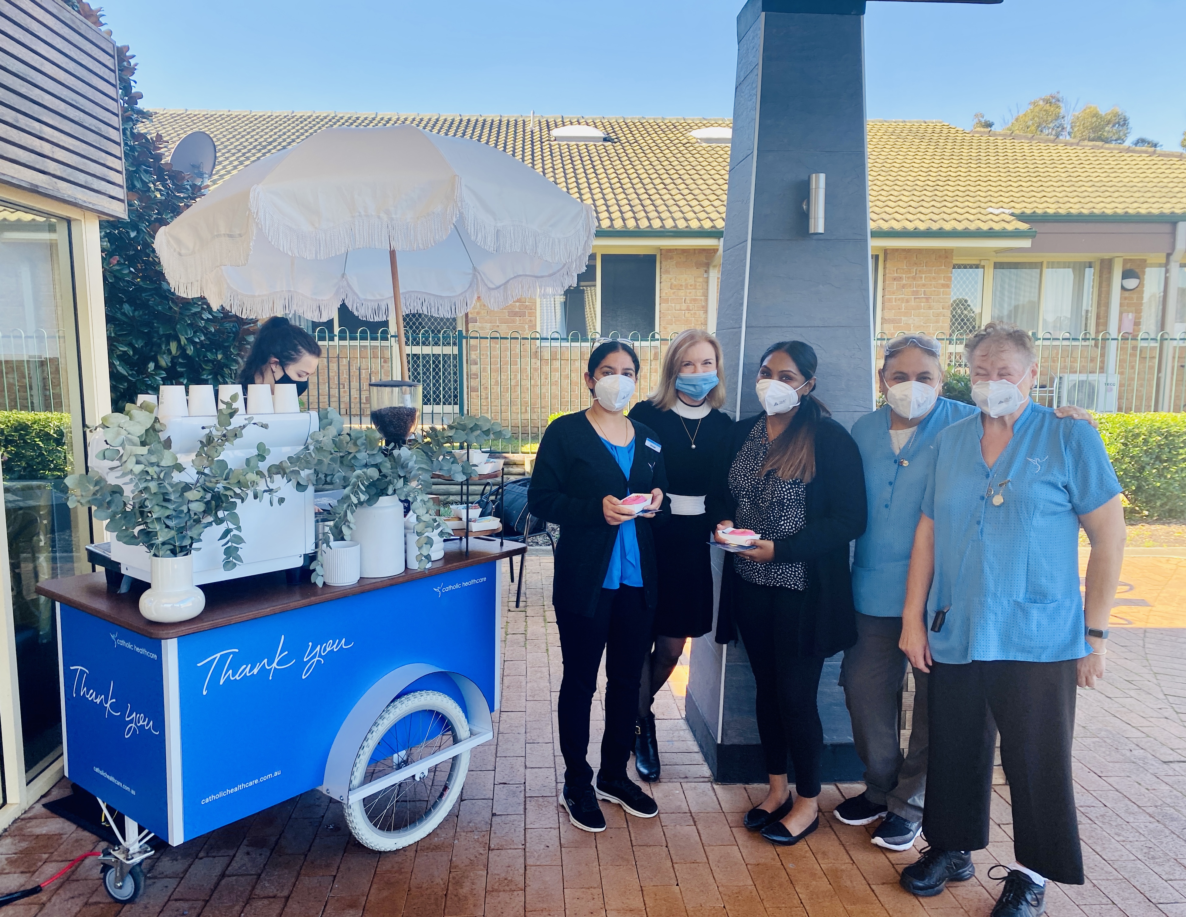 Emmaus Village, Vincentian, Bethlehem House, Gertrude Abbott Aged Care, The Sister Anne Court, St Hedwig Village, Holy Spirit Casula and MacKillop House Norwest were among the first residential aged care homes to be visited by our Catholic Healthcare pop-up ‘Thank You’ coffee and doughnut cart, which will be on the road around Sydney over the next few weeks.
